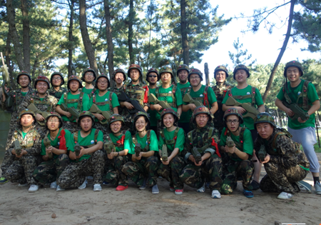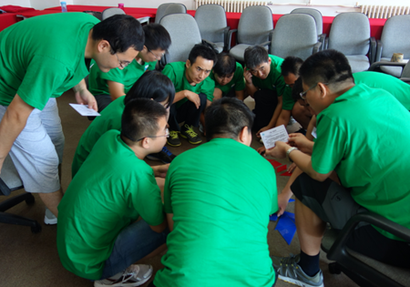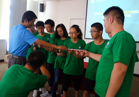 拓展活動中參訓(xùn)家人分成兩只PK隊(duì)伍,通過組建團(tuán)隊(duì)、設(shè)定隊(duì)名、選隊(duì)長、畫LOGO、喊隊(duì)訓(xùn),大家迅速形成團(tuán)隊(duì)榮譽(yù)感,在接下來的齊眉棍、七巧板、數(shù)碼風(fēng)暴、野外CS等活動中,兩只隊(duì)伍實(shí)力不相上下,各有千秋。