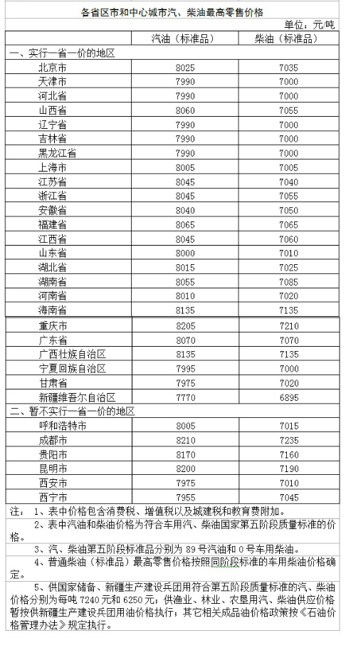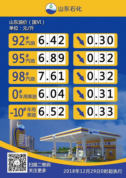 按照現(xiàn)行成品油價(jià)格形成機(jī)制,自2018年12月28日24時(shí)起,國內(nèi)汽、柴油價(jià)格(標(biāo)準(zhǔn)品,下同)每噸分別降低370元和355元。