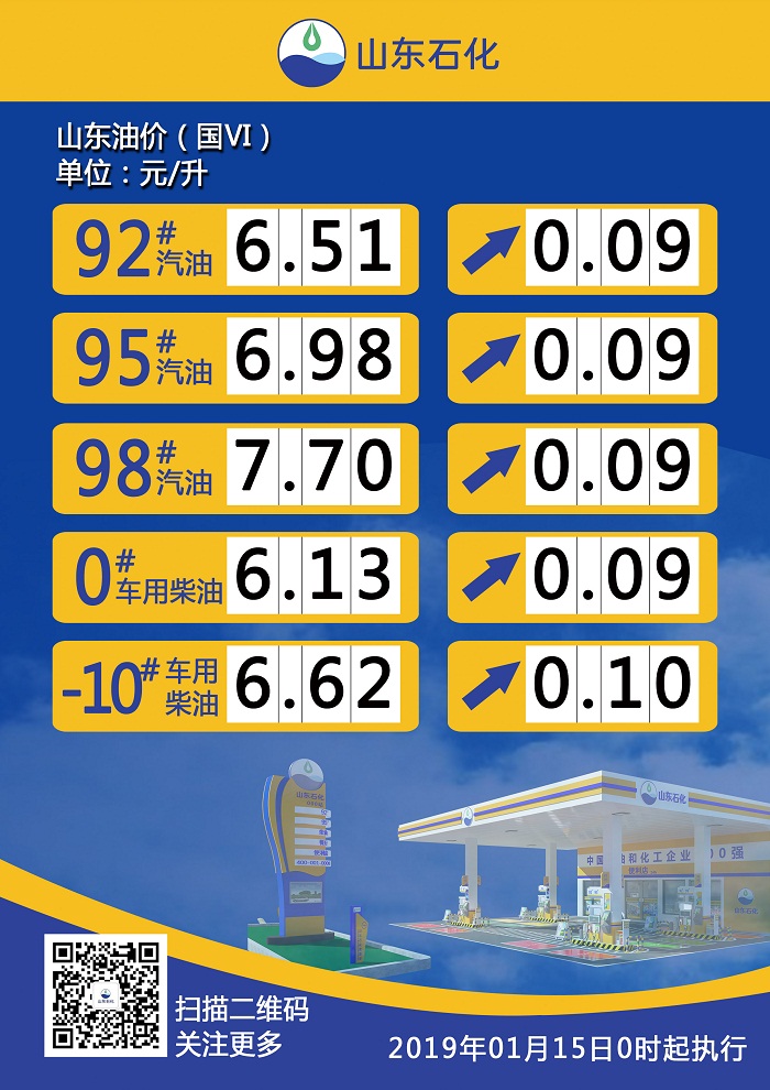 【調(diào)價公示】山東省汽、柴油最新零售指導(dǎo)價(190115)