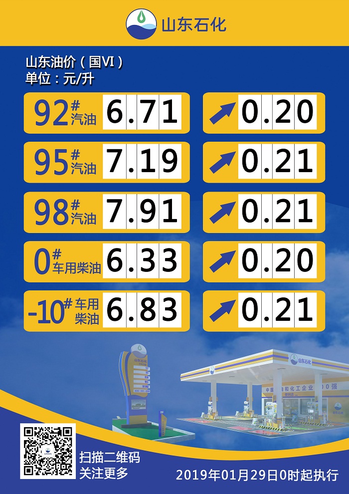 【調(diào)價(jià)公示】山東省汽、柴油最新零售指導(dǎo)價(jià)(190129)