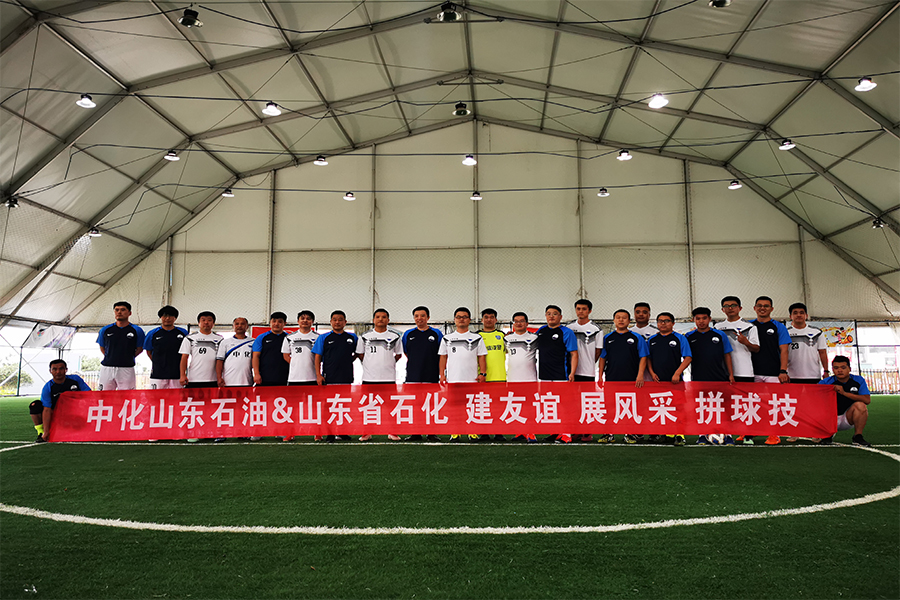 為進一步豐富文化生活,搭建溝通交流平臺,提升公司的凝聚力,近日,山東省石油化工有限公司與中化石油山東有限公司在青島市黃島區(qū)金沙灘足球場開展了一場以“球場展風采、企業(yè)增活力、共同建友誼、綠茵拼球技”為主題的職工足球友誼賽。