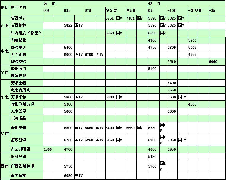 國內(nèi)煉廠2015年2月11日汽柴油價格表