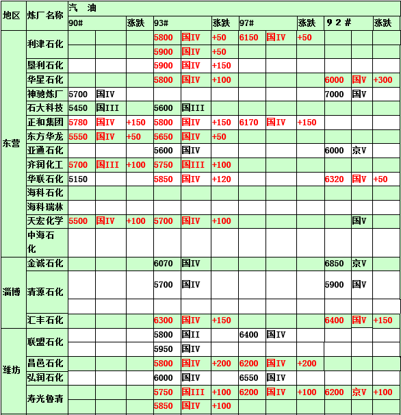 國內(nèi)煉廠2015年2月11日汽柴油價(jià)格表