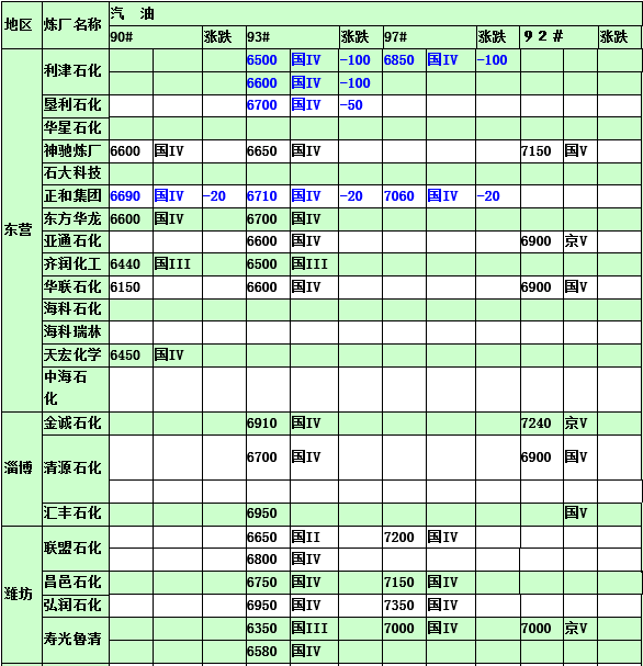 2015年3月6日山東地煉汽油價格