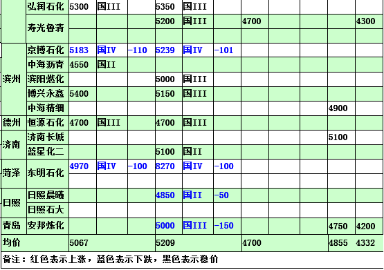 國(guó)內(nèi)煉廠2015年3月6日汽柴油價(jià)格表