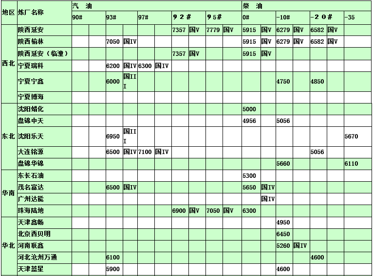 國(guó)內(nèi)煉廠2015年3月6日汽柴油價(jià)格表
