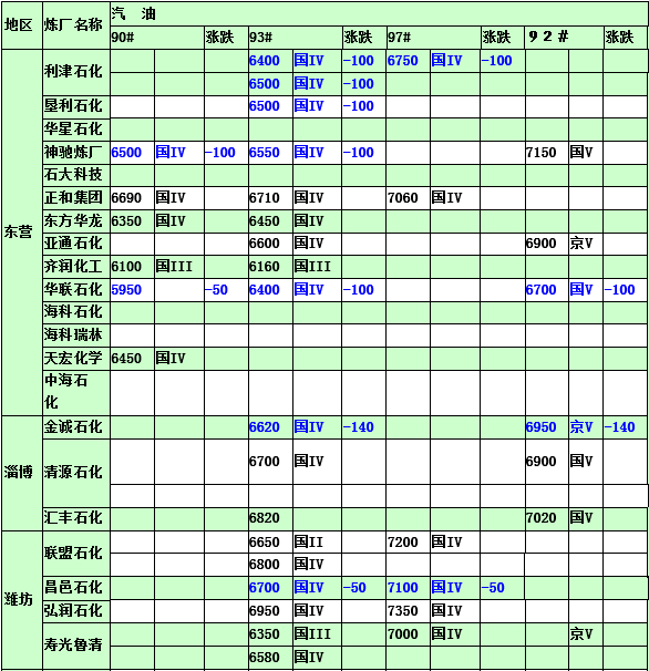 國內(nèi)煉廠2015年3月6日汽柴油價格表