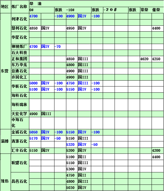 國內(nèi)煉廠2015年3月9日汽柴油價格表