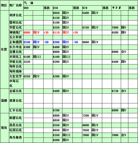 2015年3月19日山東地煉汽油價格
