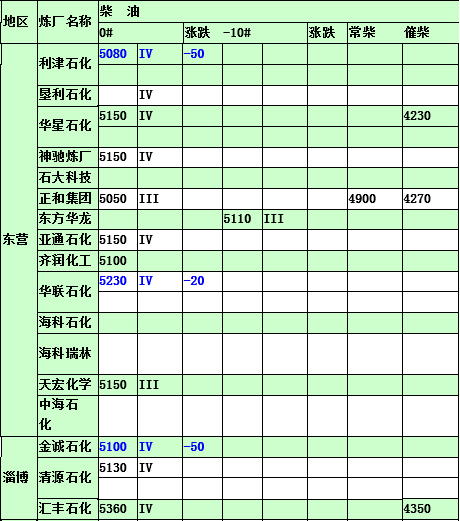 2015年4月29日山東地煉柴油價格
