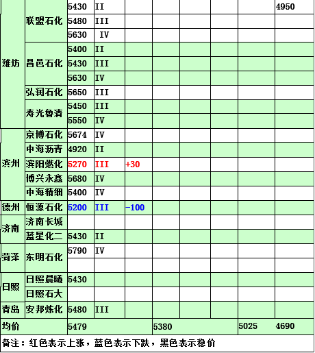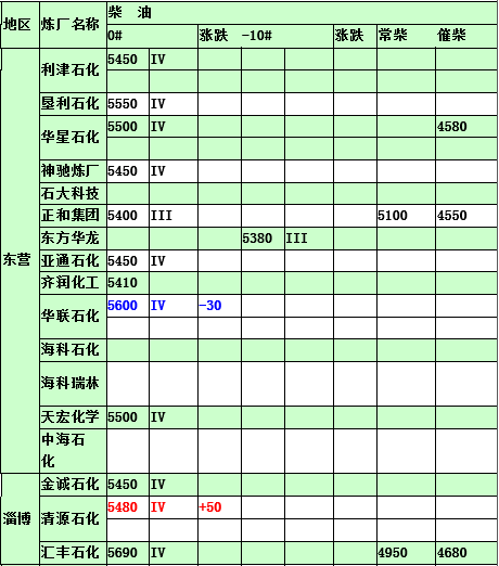 2015年5月11日山東地煉柴油價格