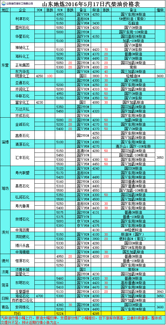 2016年5月18日山東地?zé)捚裼蛢r(jià)格表