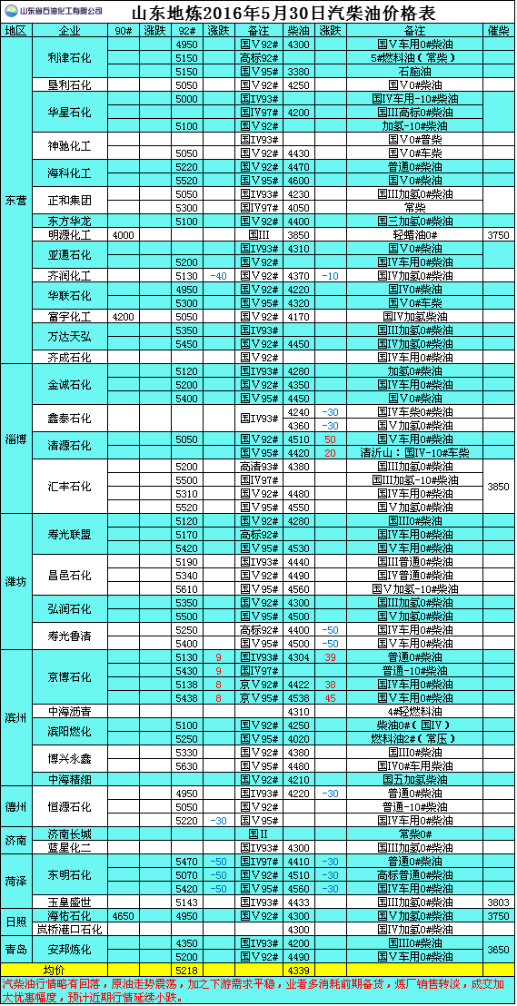 2016年5月30日山東地?zé)捚裼蛢r格表