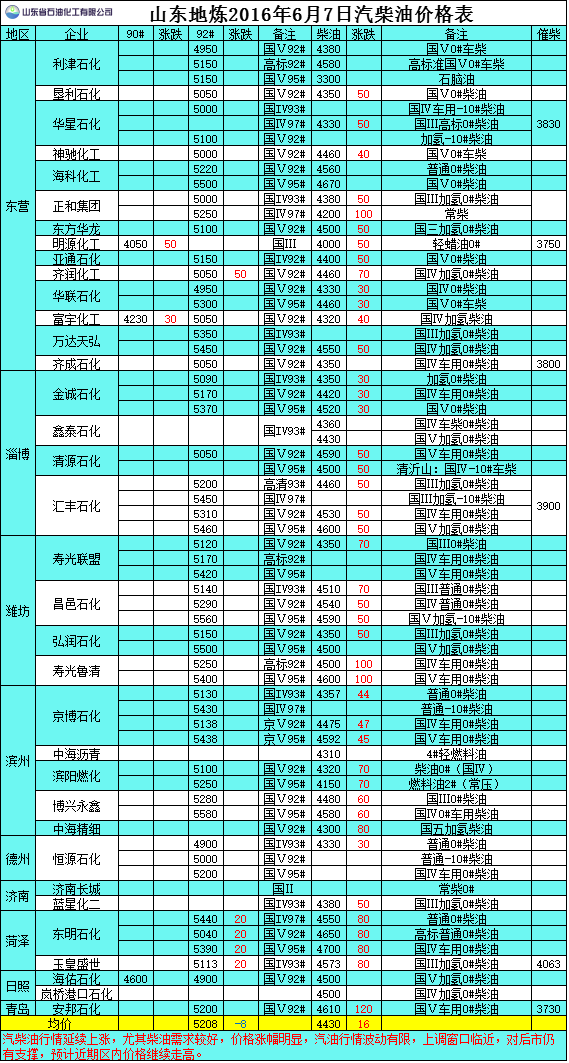 2016年6月7日山東地?zé)捚裼蛢r格表