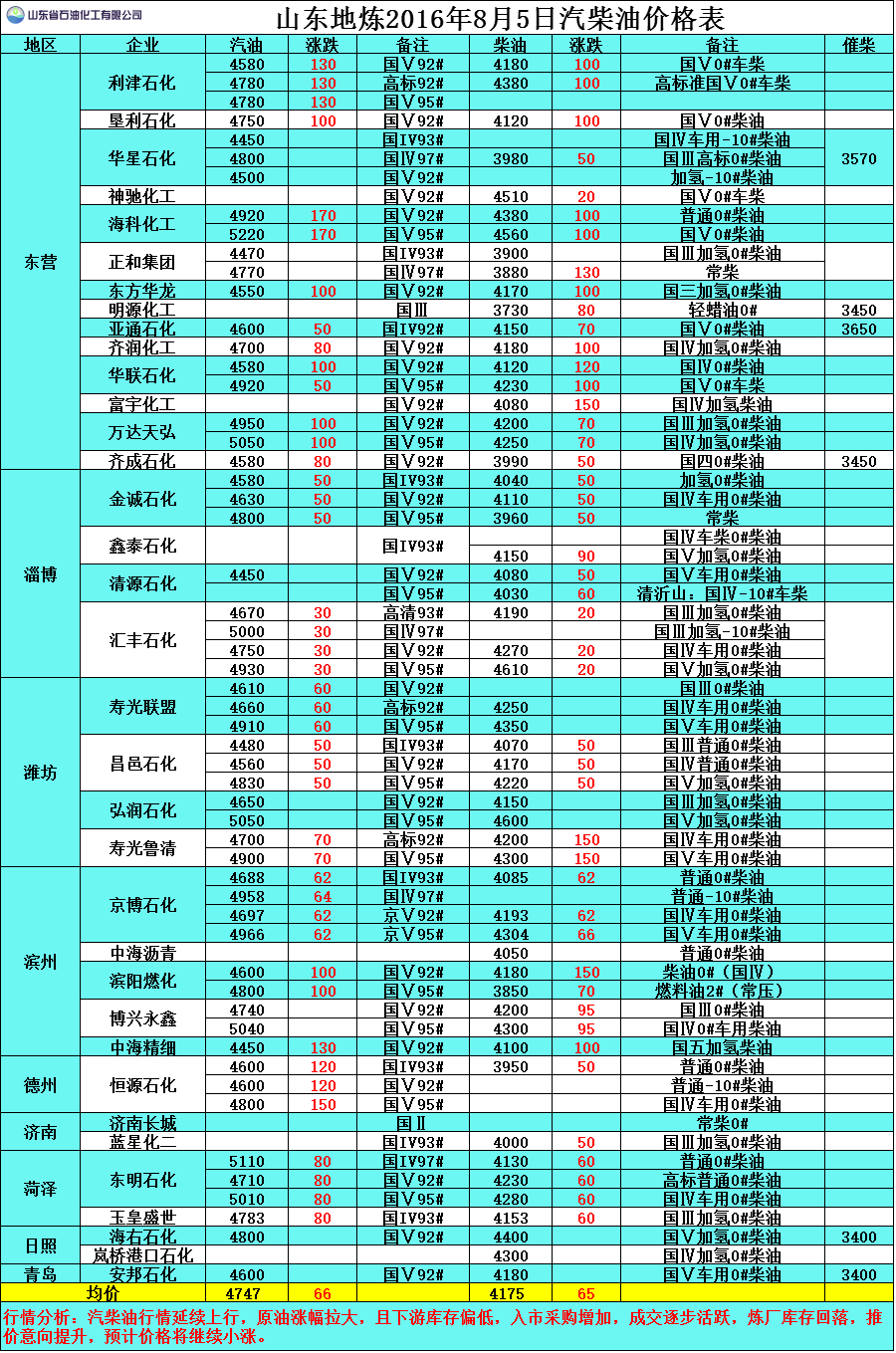 8月5日山東地?zé)捚裼蛢r(jià)格
