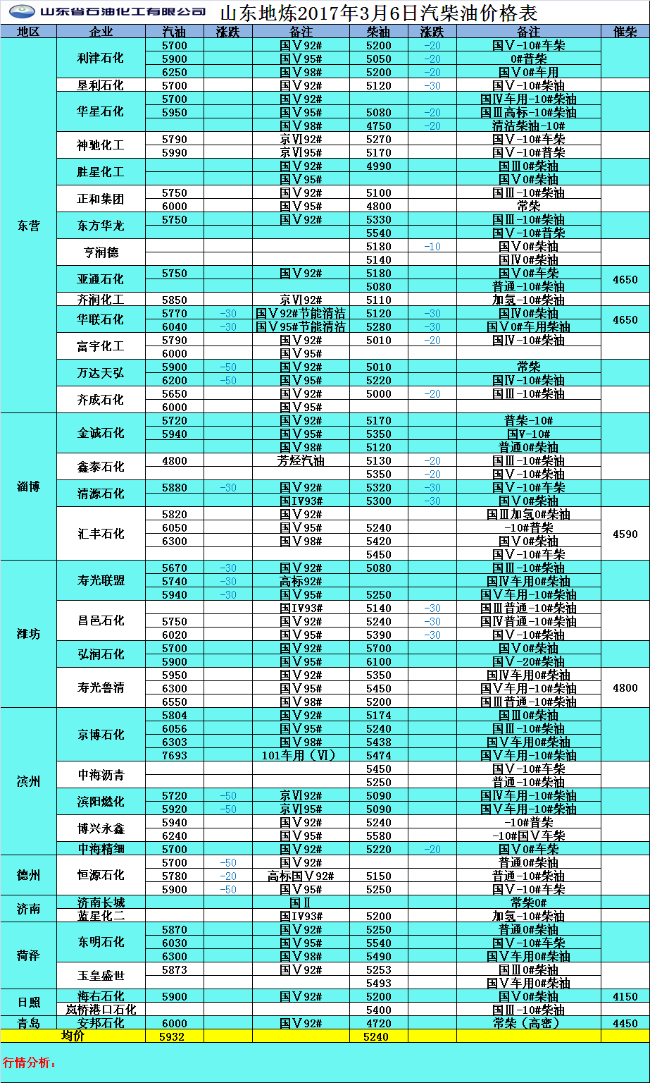 2017年3月6日山東地?zé)捚裼蛢r(jià)格