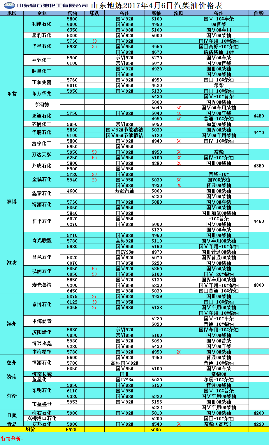 2017年4月6日山東地?zé)捚裼蛢r格