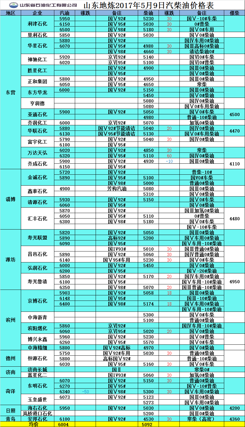 2017年5月9日山東地?zé)捚裼蛢r(jià)格